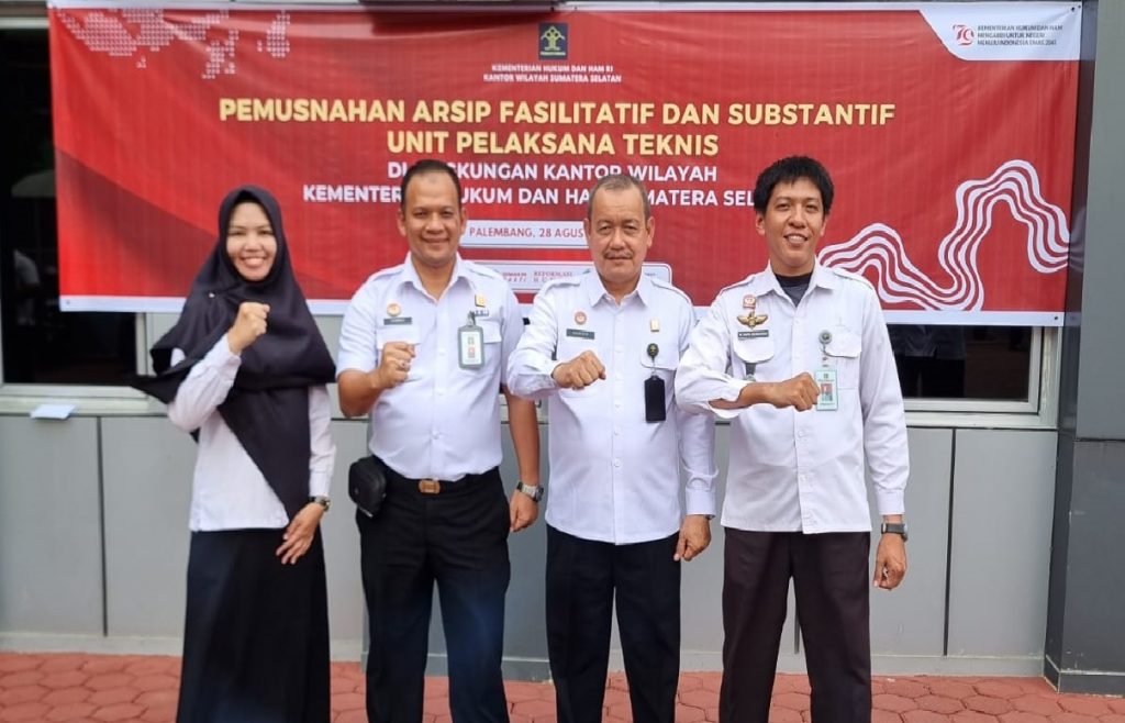 Lembaga Pemasyarakatan (Lapas) Kelas IIA Banyuasin melalui Kepala Urusan Umum Muhammad Dapik Dermawan dan staf Neza Purnamasari mengikuti kegiatan Pemusnahan Arsip Inaktif yang digelar oleh Kantor Wilayah Kementerian Hukum dan HAM Sumatera Selatan, Rabu (28/8). Adapun arsip inaktif yang telah dimusnahkan yaitu arsip dari 8 UPT di lingkungan Kanwil Kemenkumham SUMSEL yaitu, Lapas kelas […]