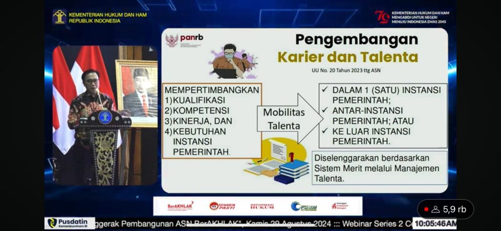 Banyuasin, sipasba.com,- Lembaga Pemasyarakatan Kelas IIA Banyuasin mengikuti Webinar Series 2 ‘Cerdas Bersama Badan Pengembangan Sumber Daya Manusia Hukum dan HAM’ dengan tema Karier dan Kinerja Jabatan Fungsional sebagai Penggerak Pembangunan ASN BerAKHLAK, Senin (29/08/2024). Pemateri pada webinar series 2 ini merupakan Plt. Deputi Bidang SDM Kemenpan RB yakni Bapak ABA Subagja, S. Sos., […]